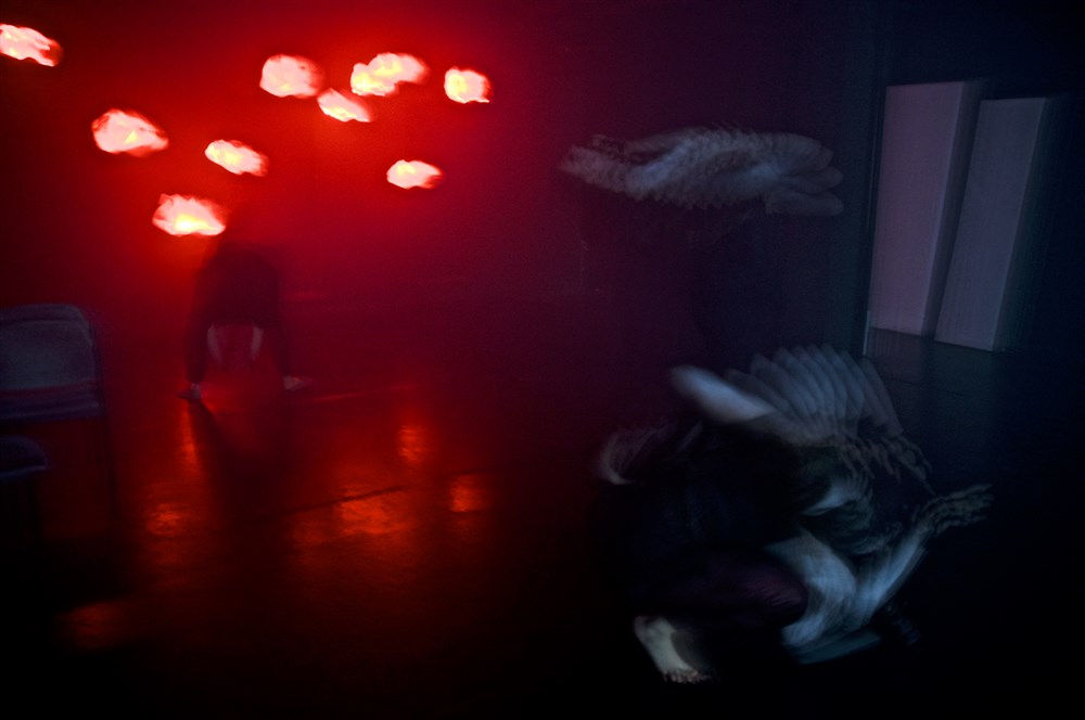 A sample of work for a piece of dance-theater, physical theater, with an interdisciplinary artistic direction : lights, sounds and space are inherent characters of the piece. An insight on the unconscious with a journey on a dream and its abusrdity, its abrupt transition between imagination, nightmare and lucid dreams. The audience is in the head of a dreamer, that struggles with derealisation : he he/she awake, or has he/she never been ?